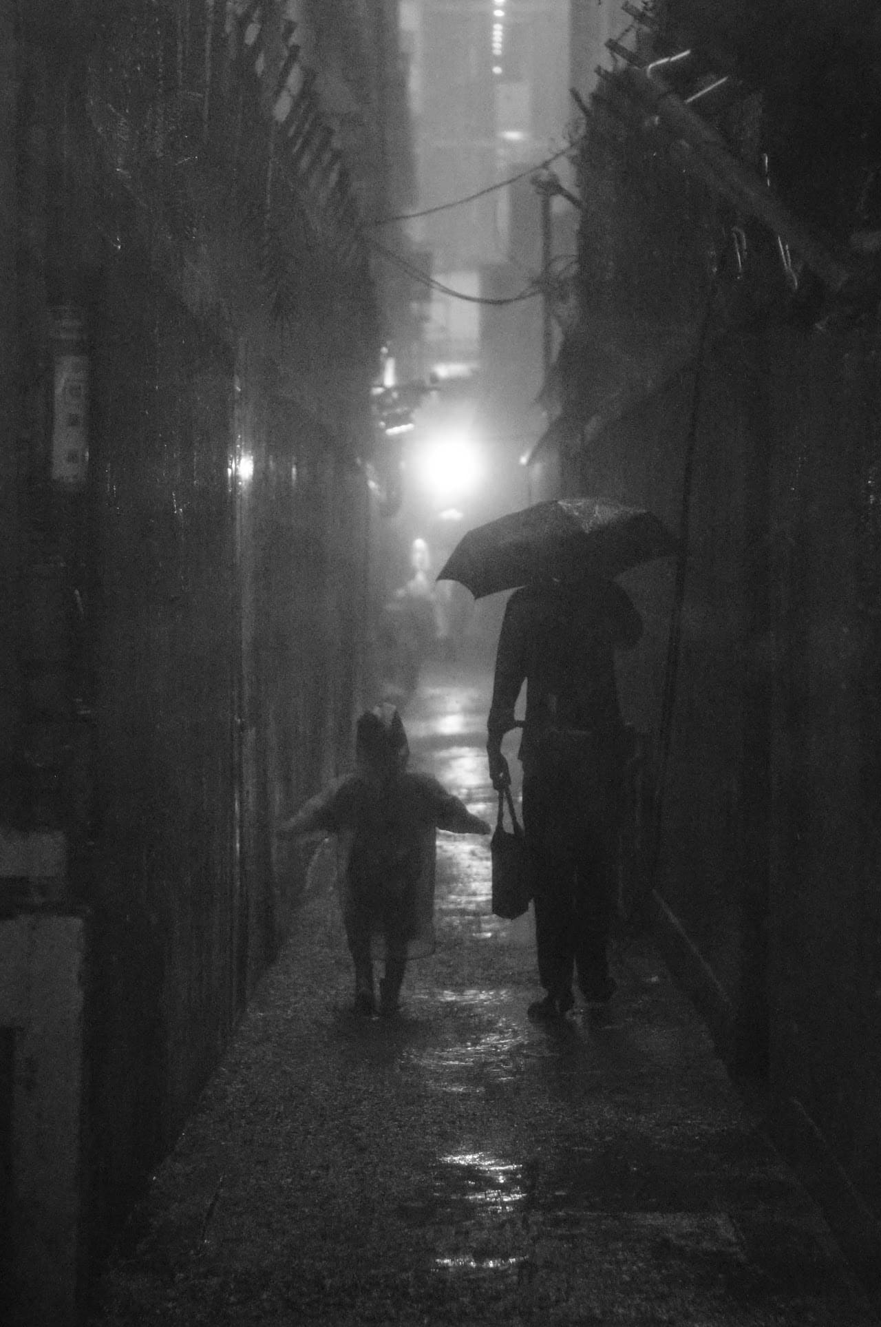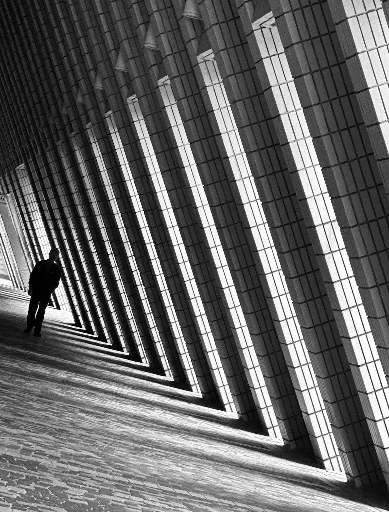 我運用了黑白影像,代表著內心世界的顏色。照片中一個人走在無盡的路上,即使有光照進來,但世界依然灰暗,人物也依舊站在陰影裏。